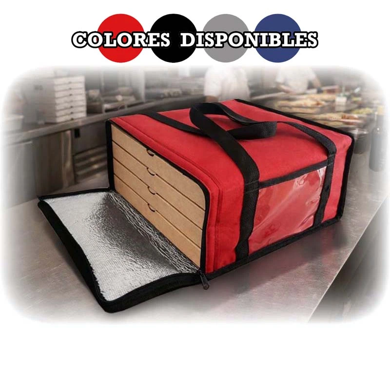 BOLSO TERMICO PARA 4 CAJAS DE PIZZA CON CIERRE SIN VELCRO, MEDIDAS 36 X 36 X 20