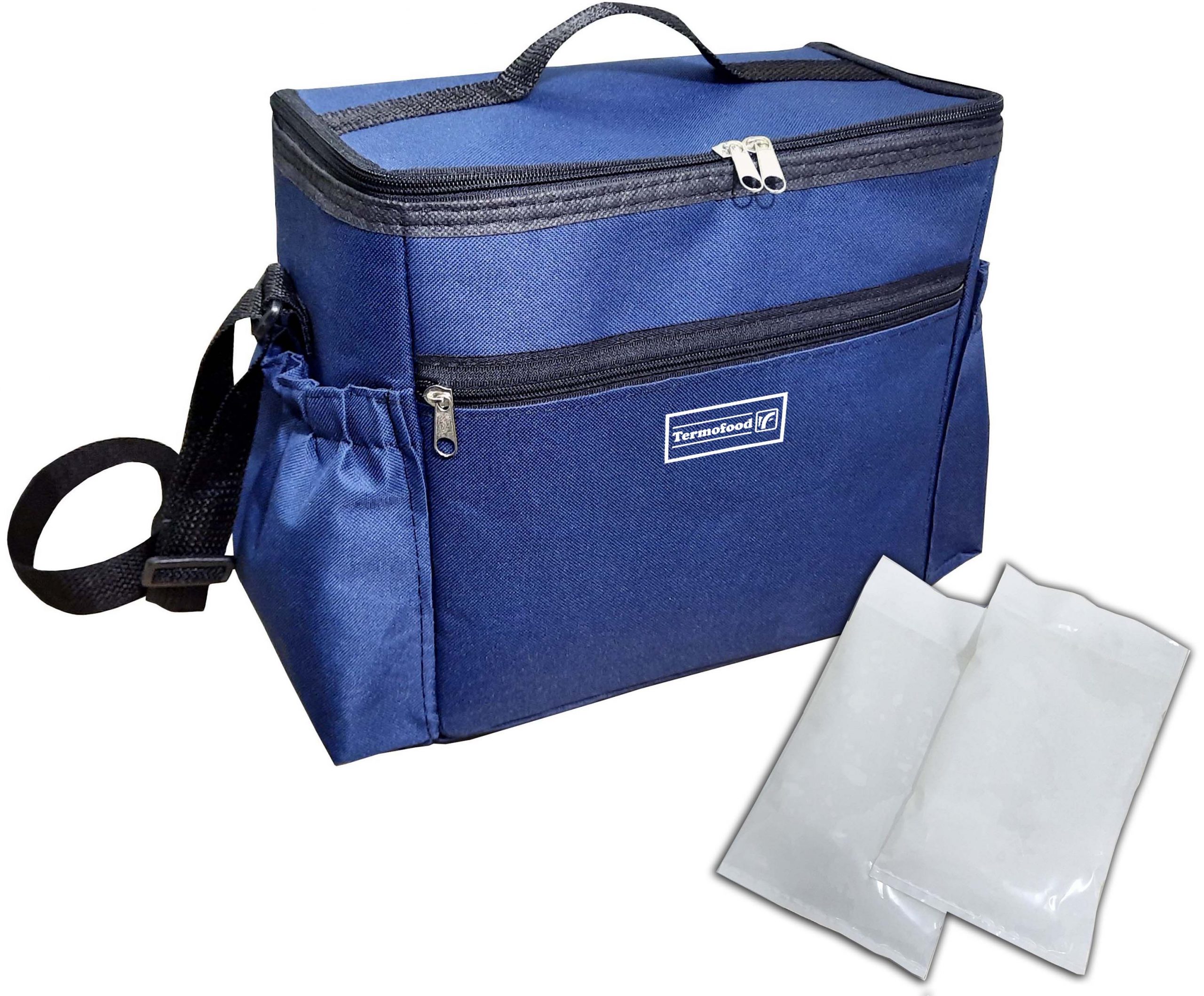 • LUNCHERA CAPACIDAD 12 LTS. MEDS. 25 X 19 X 25, CON BOLSILLO FRONTAL Y GUANTERAS ELASTIZADAS LATERALES, MANIJA Y CORREA REGULABLE TIPO MORRAL