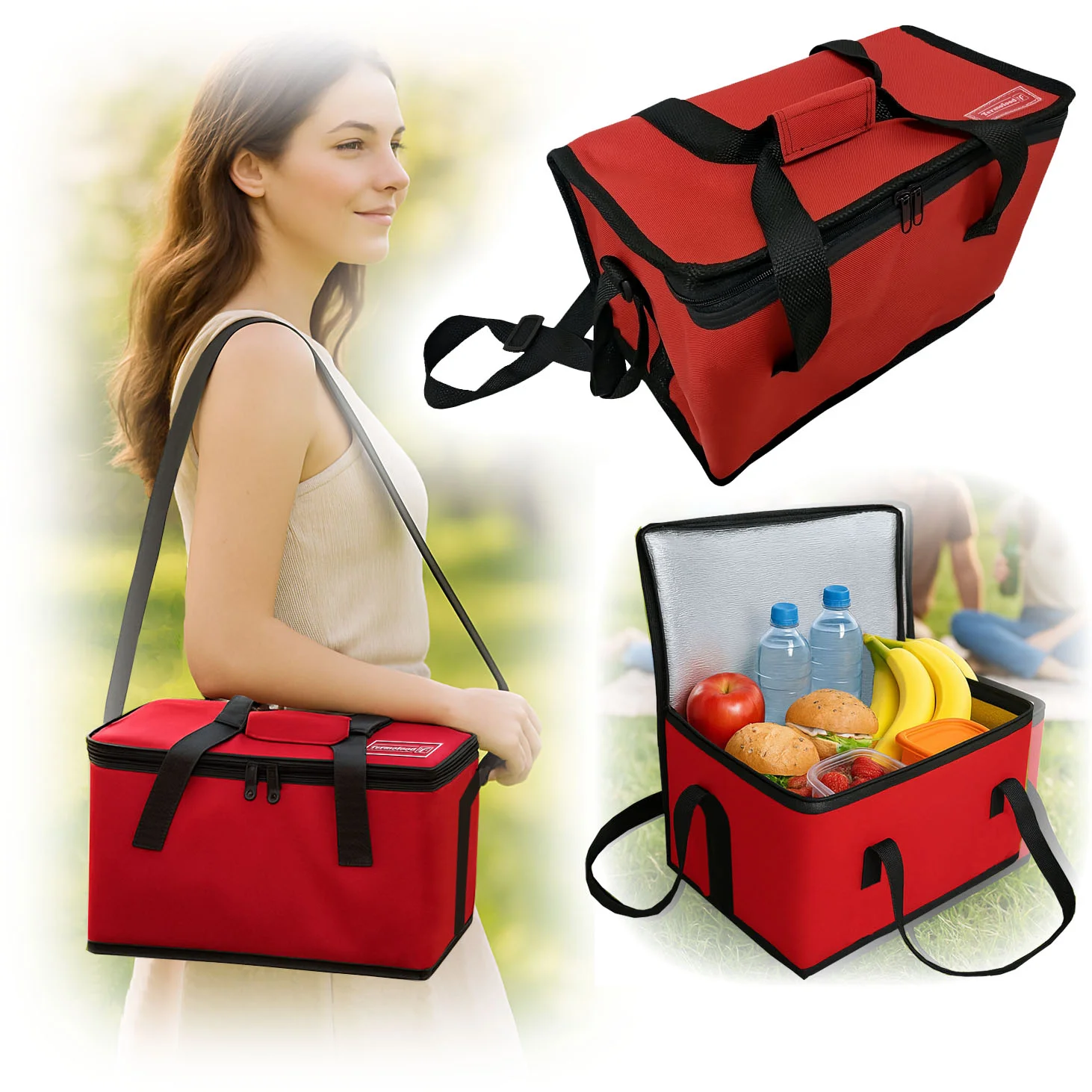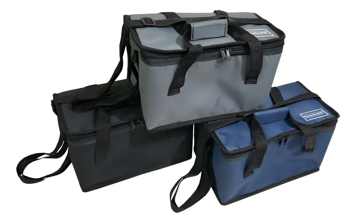 LUNCHERA CAPACIDAD 12 LTS. MEDS. 33 X 18 X 20, MANIJAS SUPERIORES CON VELCRO MAS CORREA REGULABLE PARA LLEVAR COMO MORRAL