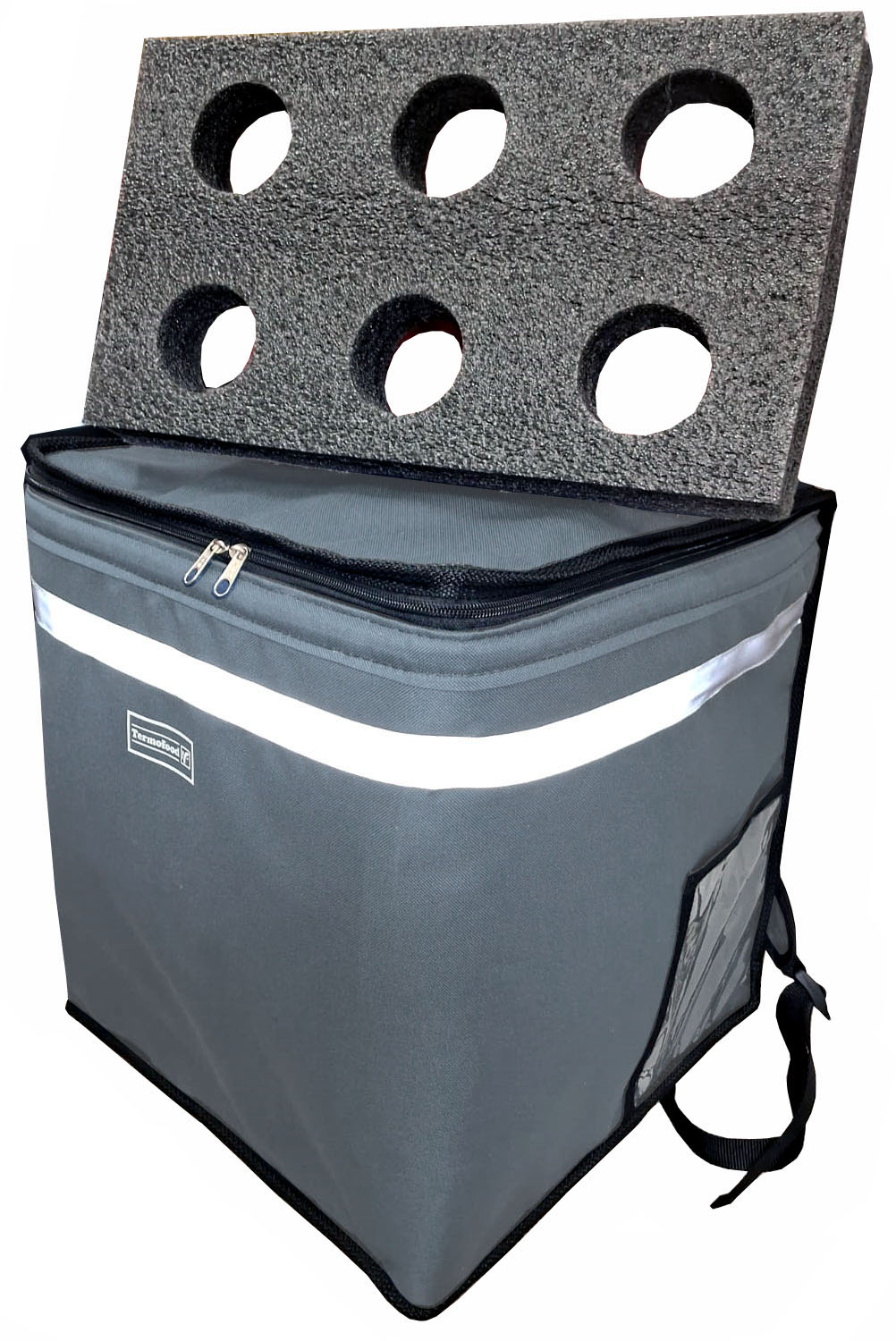 - MOCHILA DELIVERY CLASICA DE ABERTURA POR ARRIBA, REFUERZOS RIGIDOS EN BASE Y ESPALDAR, CAPACIDAD 8 CAJAS DE PIZZA, MEDS. 37 X 38 X 40